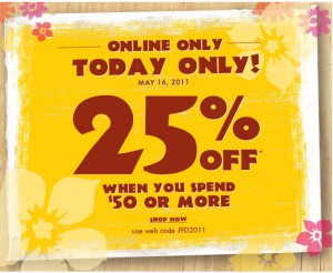 Spend $50 or more online at The Childrens Place today and receive 25% off your purchase when you use the web code J9D2011 at checkout. Tees, tanks, shorts, and more start at just $6!