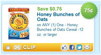 - $0.75 off any one Honey Bunches of Oats 12oz or larger (Use zip 33133)