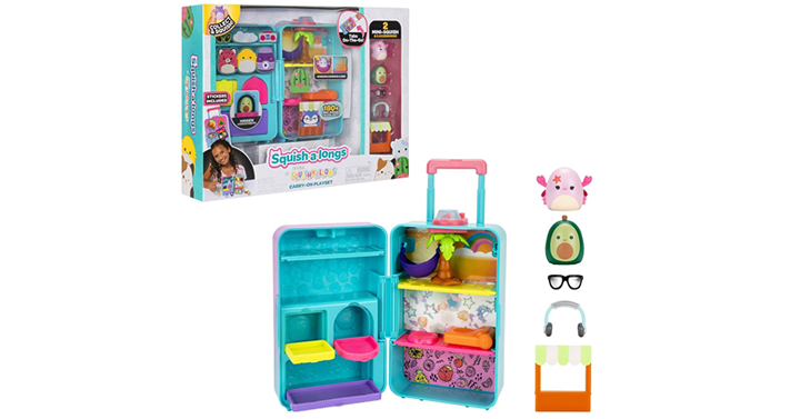 Does someone you know love Squishmallows?? How about getting something fun for a surprise? Get on over to Amazon and get Squish-a-longs On-The-Go Luggage Playset – (2) 1” Mini-Squish, 3 Levels of Playt – Just $11.78!