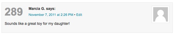Out of 1388 comments on the leappad giveaway last week, the winner was comment 289 from Marcia G.
